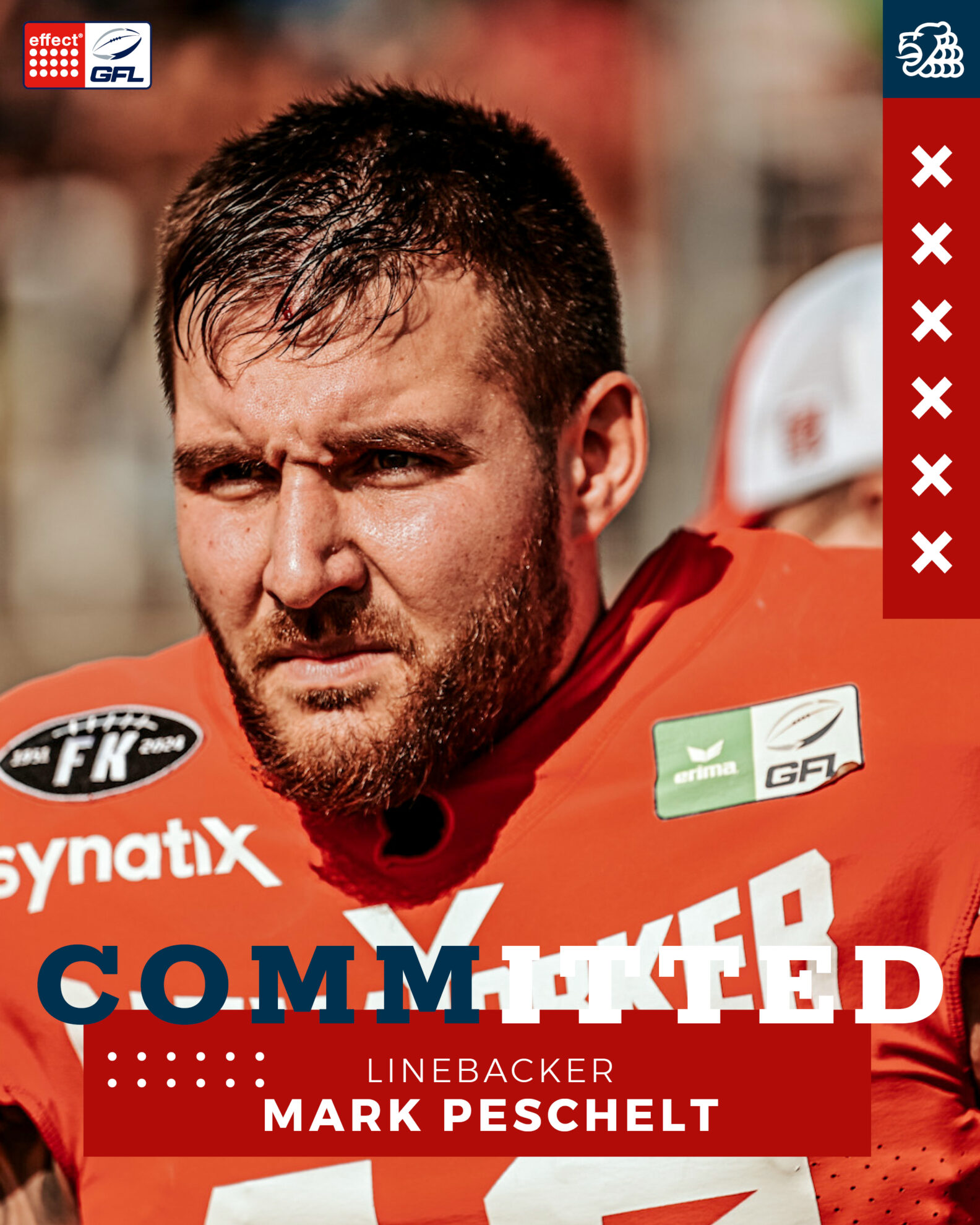 Mark Peschelt gehört seit 2010 zum Verein und begann seine Karriere bei den Junior Lions. Zunächst war der 32-Jährige als Wide Receiver aktiv und spielte bis 2022 für die Lions 2.