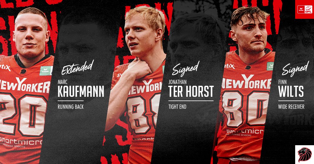 Mit dem Rückkehrer Runningback Marc Kaumann, sowie den beiden Neuzugängen Wide Receiver / Tight Ends Finn Wilts und Jonathan ter Horst, erhält der Angriff der Lions weitere Verstärkung und Kadertiefe.