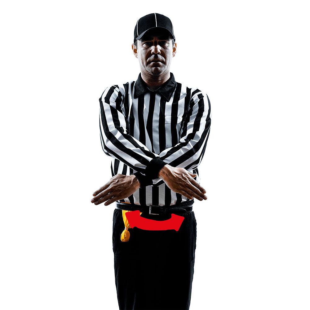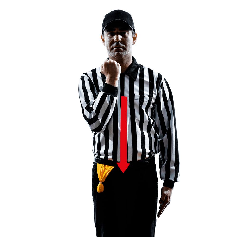 Unerlaubter Block von hinten unterhalb der Gürtellinie. Strafe: 15 Yards.